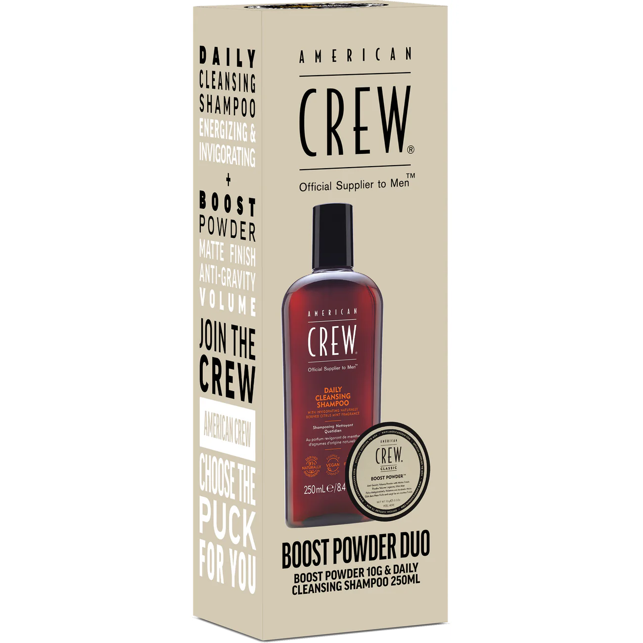 Transform your hair routine with the American Crew Duo Pack. This dynamic combination of Daily Shampoo and Boost Powder delivers the ultimate in hair care and styling.