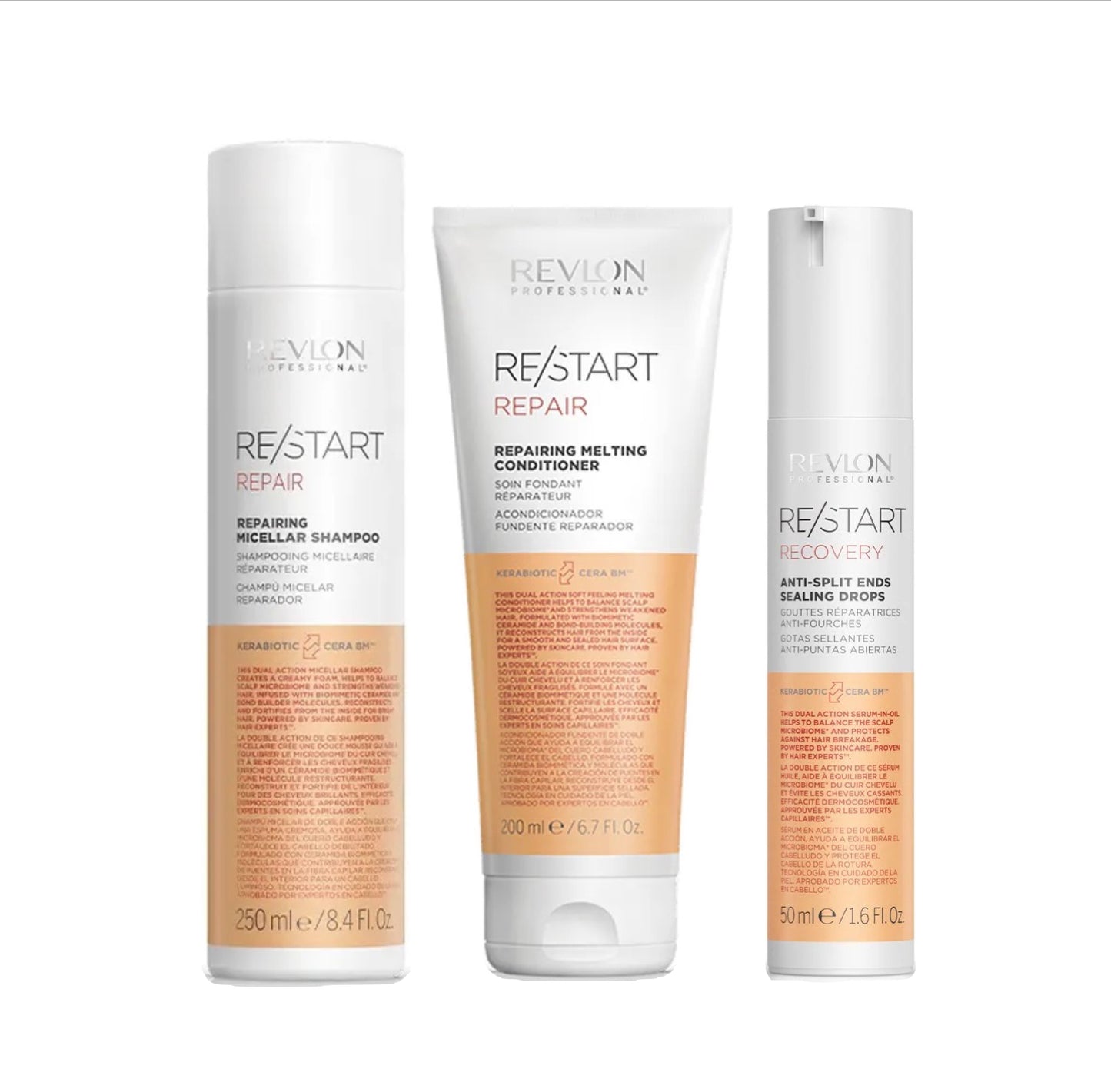REVLON PROFESSIONAL RE/START™ REPAIR MICELLAR SHAMPOO 250ml & REPAIRING MELTING CONDITIONER 200ml & ANTI-SPLIT SEALING DROPS 50ml TRIO